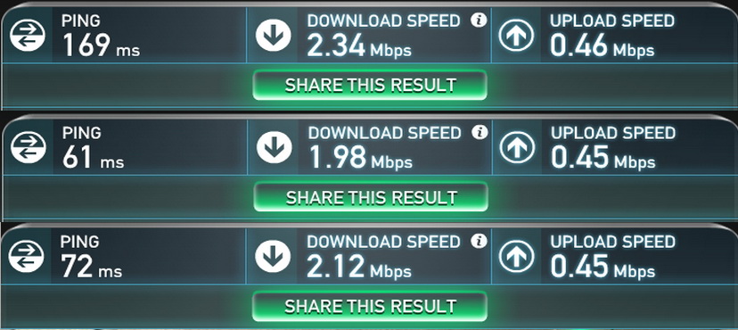 Модем действительно имеет усиленную антенну, об этом говорят показатели известного сервиса Speedtest.net